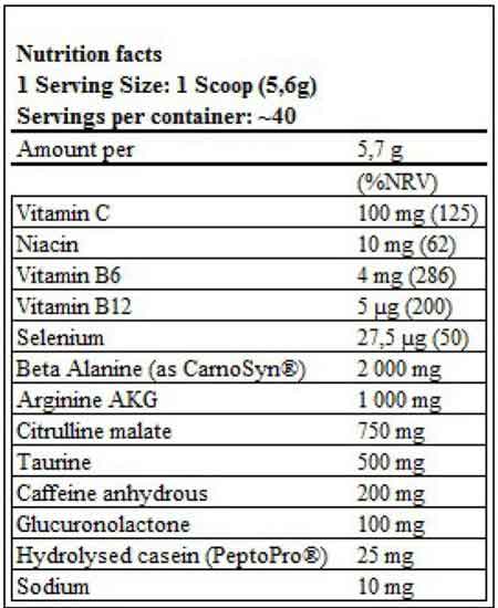 FA Nutrition Xtreme Napalm Pre-workout Depending on your body mass mix 5,6 g of powder (~1 scoop) with 250 ml of water or 11,2 g of powder (~2 scoops) with 500 ml of water and consume 30 minutes before workout. Do not exceed the recommended daily dose.