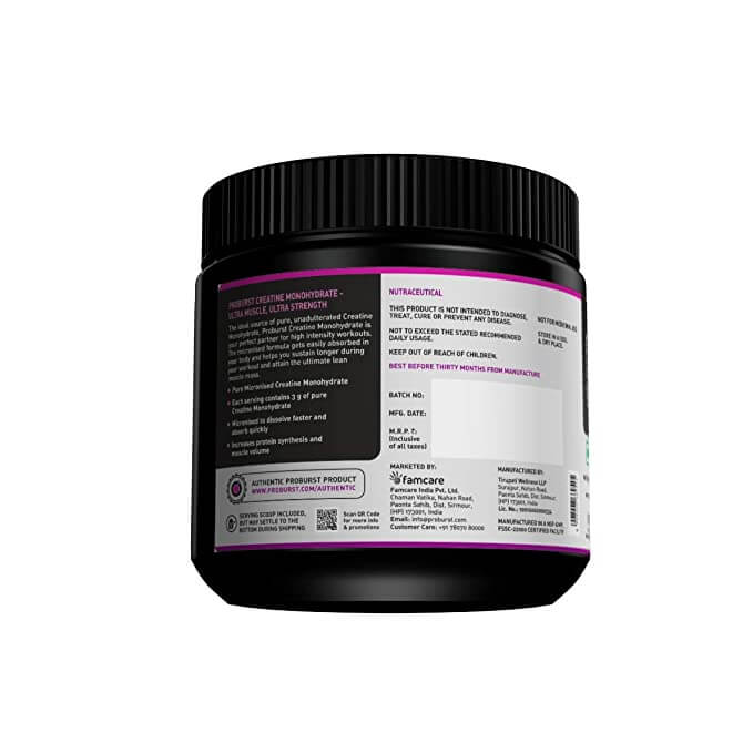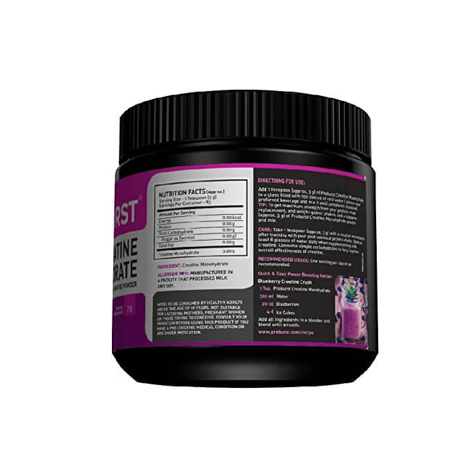 • Proburst creatine monohydrate serves 3 grams of pure unadulterated grade pure creatine monohydrate per serving
