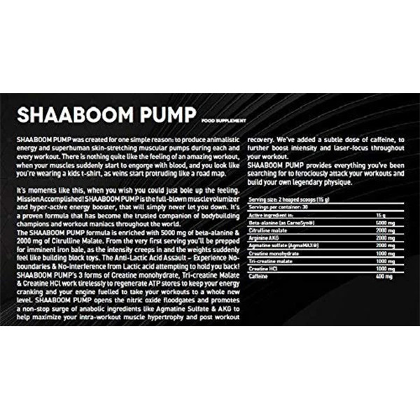 Shaboom Pre Workout was created for one simple reason: to produce animalistic energy and superhuman skin-stretching muscular pumps during each and every workout. There is nothing quite like the feeling of an amazing workout when your muscles suddenly start to engorge with blood, and you look like you’re wearing a kid’s…